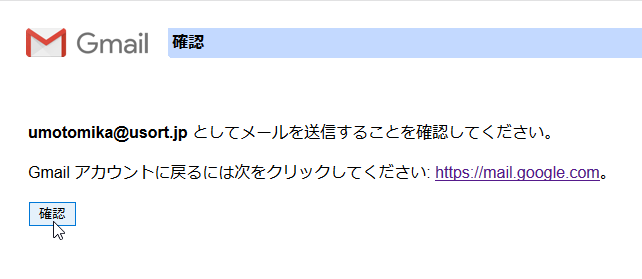 SMTPサーバー経由でメールを送信しますの画面が表示されます。