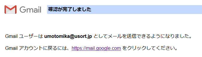この画面が表示され、独自ドメインのメールアドレス追加とgmailアドレスへの転送設定が終わりました。