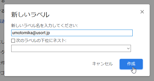 新しいラベル名を入力して下さいにメールアドレスを入力(分かりやすい名前なら何でも)