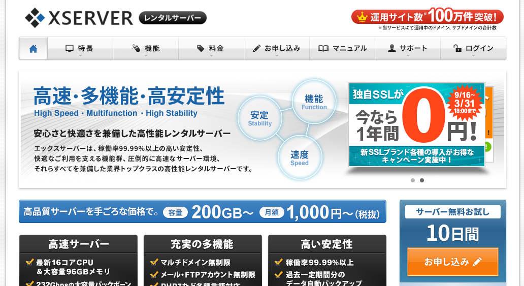 月額1,000円(税抜)から、高速・多機能・高安定レンタルサーバー『エックスサーバー』