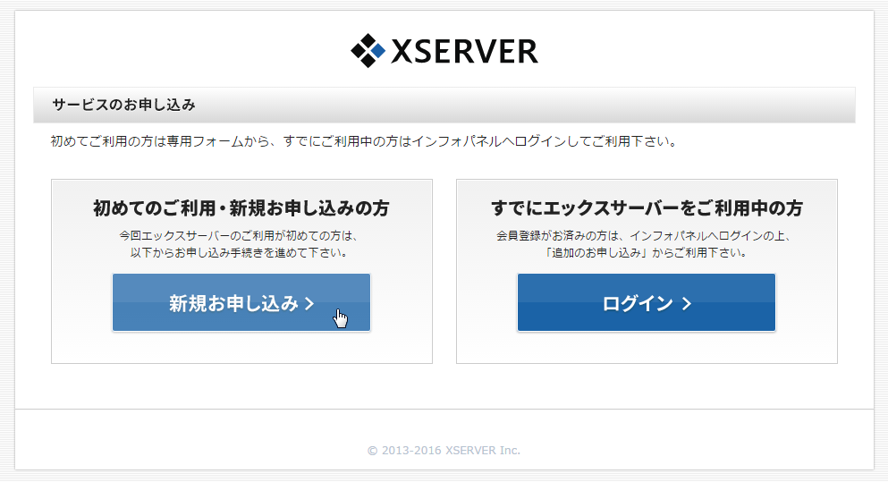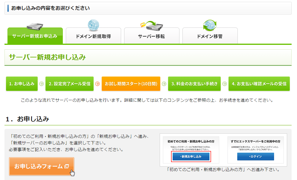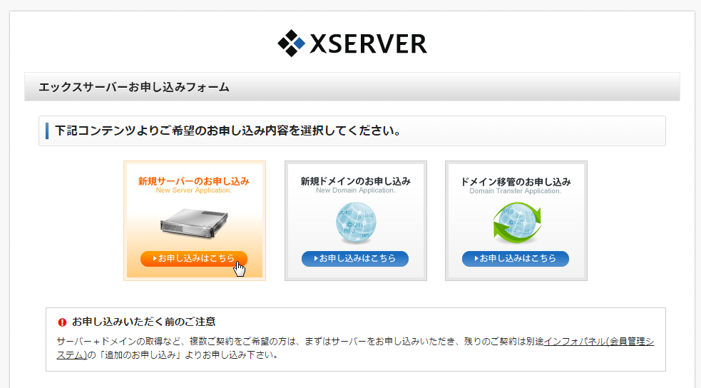 新規サーバーのお申し込み のところにある お申し込みはこちら をクリック