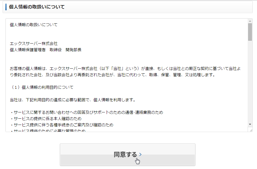 個人情報の取り扱いが表示されるので内容を確認して 同意する をクリック