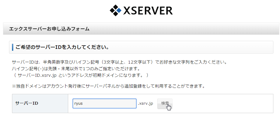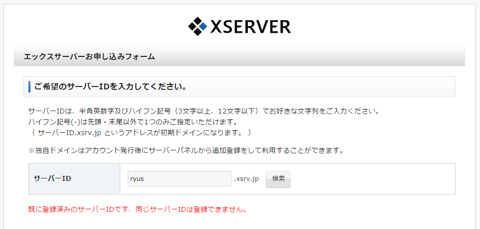 次の画面でサーバーIDを決めます。ryusとしたかったのですが、